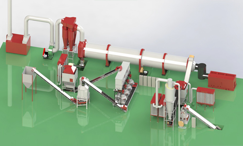 原料水分在30%-40%之間,需要配備滾筒烘干機(jī),時(shí)產(chǎn)5-7噸木屑顆粒的烘干筒尺寸為2m*18m;